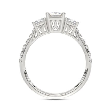 LADIES RING 3CT ROUND/EMERALD/TRAPEZOID DIAMOND 14K WHITE GOLD (CENTER STONE EMERALD DIAMOND 2CT )