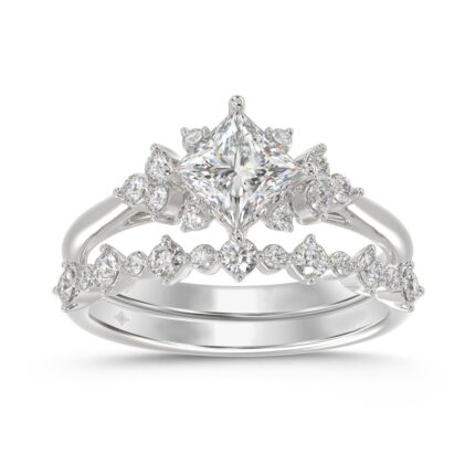 14K WHITE GOLD 1 1/2CT ROUND DIAMOND LADIES BRIDAL SET (CENTER STONE PRINCESS DIAMOND 1CT)