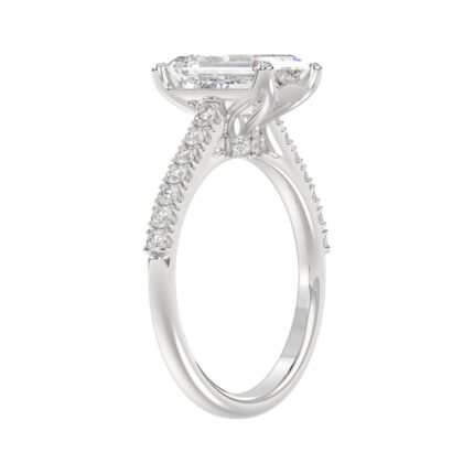 LADIES BRIDAL SET 3 1/2CT ROUND/EMERALD DIAMOND 14K WHITE GOLD (CENTER STONE EMERALD DIAMOND 2.00CT)