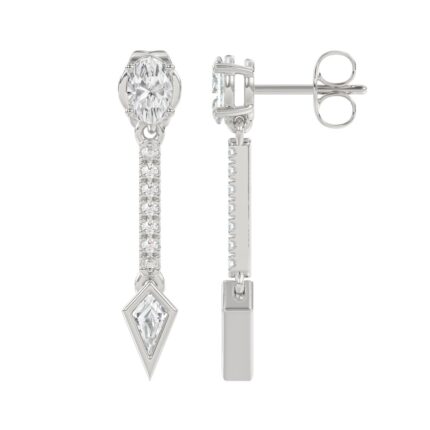 14K WHITE GOLD 1.00CT ROUND/OVAL/KITE DIAMOND LADIES EARRINGS