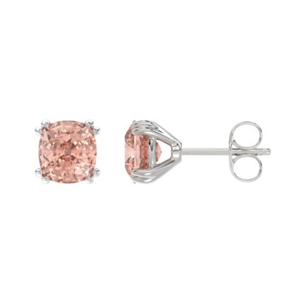 14K WHITE GOLD 2.00CT PINK CUSHION DIAMOND LADIES EARRINGS