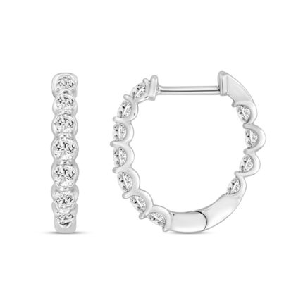 LADIES IN/OUT HOOP EARRINGS 1.00CT ROUND DIAMOND 14K WHITE GOLD (SI QUALITY)