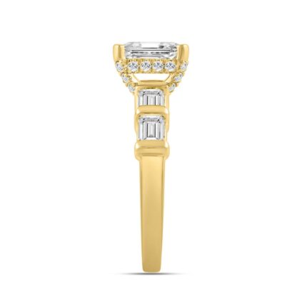 LADIES RING 3CT ROUND/EMERALD/BAGUETTE DIAMOND 14K YELLOW GOLD (CENTER STONE EMERALD DIAMOND 2.00CT)