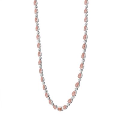 14K WHITE GOLD CRAFTED WITH 18K YELLOW GOLD BACK PLATE 1 1/2CT ROUND/PINK PEAR DIAMOND LADIES NECKLACE