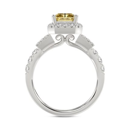 14K WHITE GOLD CRAFTED WITH 18K YELLOW GOLD SHANK 1 1/2CT ROUND/YELLOW PEAR DIAMOND LADIES RING