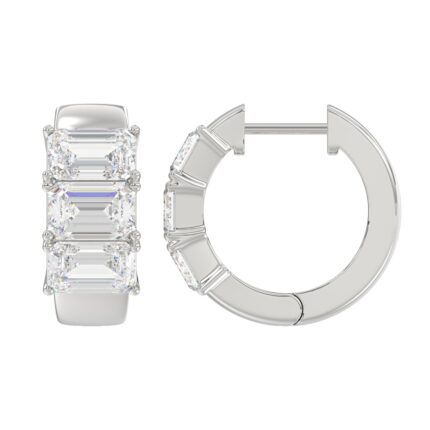 14K WHITE GOLD 3.00CT EMERALD DIAMOND LADIES HOOPS EARRINGS