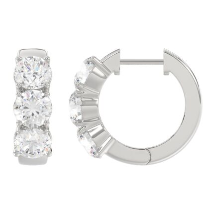 14K WHITE GOLD 3.00CT ROUND DIAMOND LADIES HOOP EARRINGS