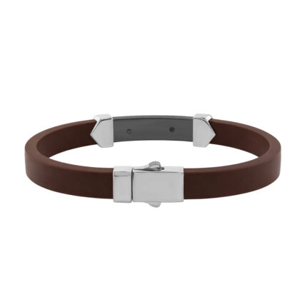 Men’S Sterling Silver White Bracelet With Brown Leather Strap And Central Black Accent – 0.25Ct