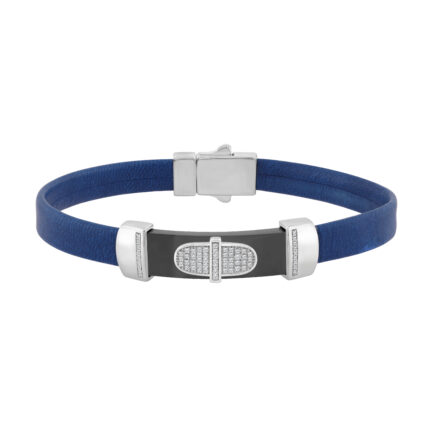 0.25 Ct Round Diamond Men’S Bracelet – Sterling Silver White With Rubber Strap (Blue/Black)
