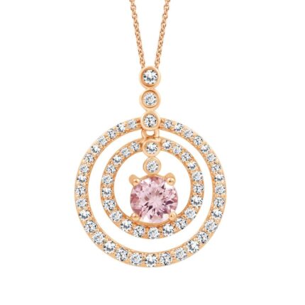 LADIES PENDANT 1.40CT ROUND DIAMOND 14K ROSE GOLD (PEACH MORGANITE 1.20CT)
