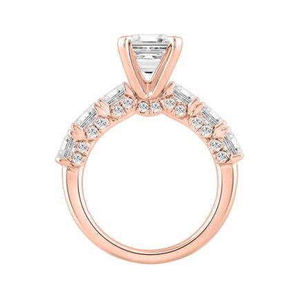 14K ROSE GOLD 4 1/2CT ROUND/EMERALD DIAMOND LADIES RING (CENTER STONE EMERALD DIAMOND 3CT)