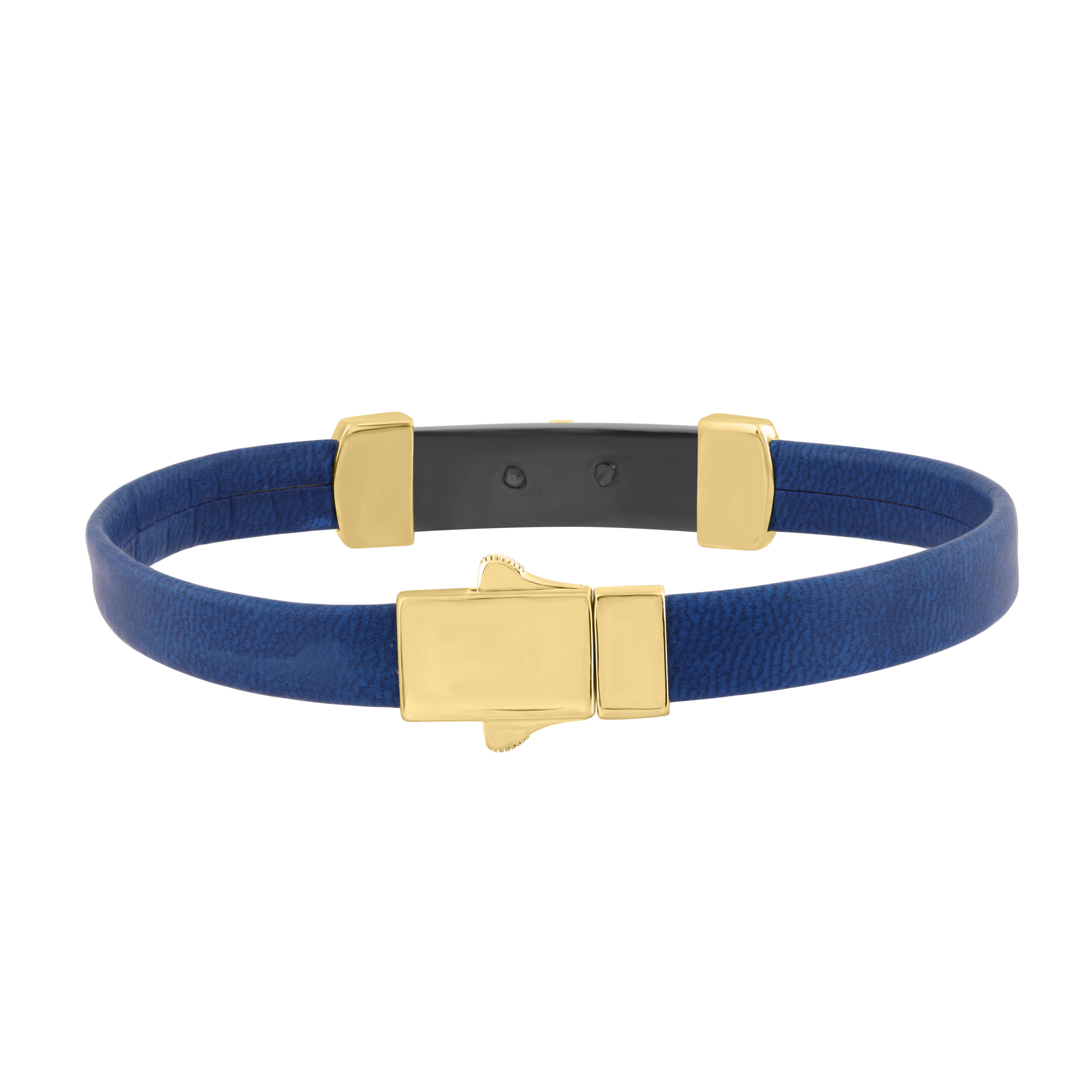 0.25 Ct Round Diamond Men’S Bracelet Yellow Gold With Rubber Strap (Blue/Black)