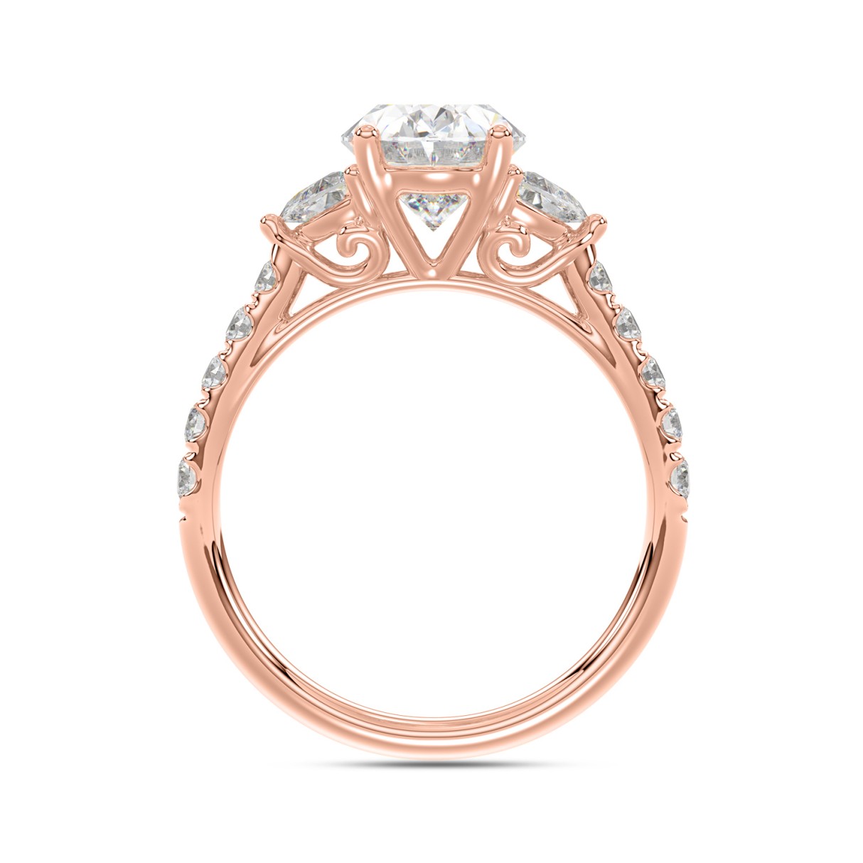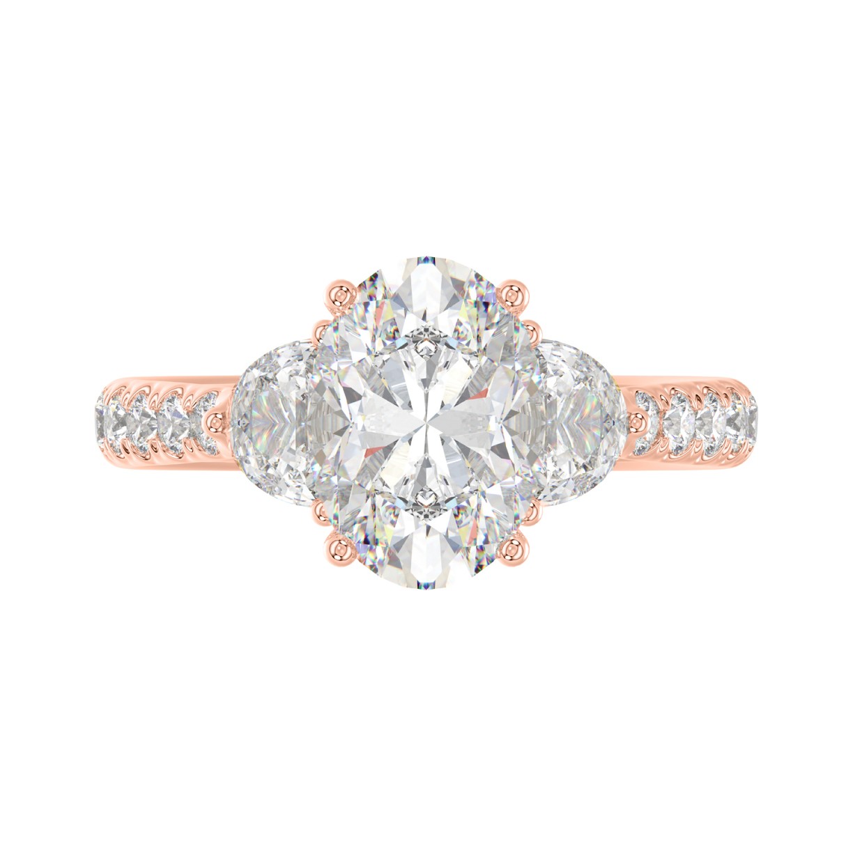 14K ROSE GOLD 3.00CT ROUND/OVAL/HALF MOON DIAMOND LADIES RING (CENTER STONE OVAL DIAMOND 2CT)