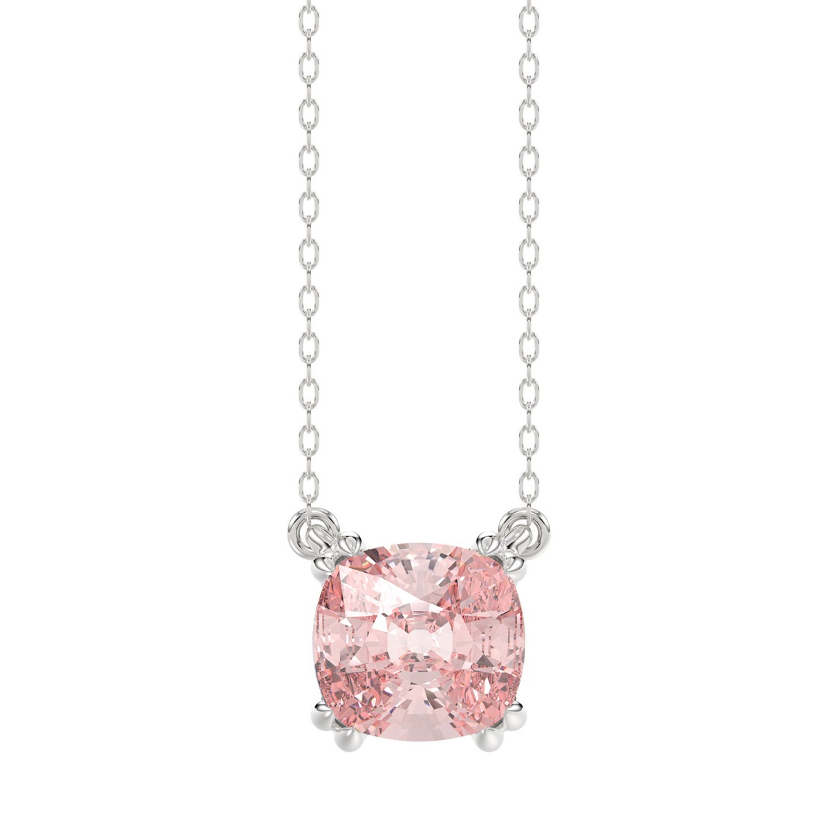 14K WHITE GOLD 1.00CT CUSHION PINK DIAMOND LADIES PENDANT
