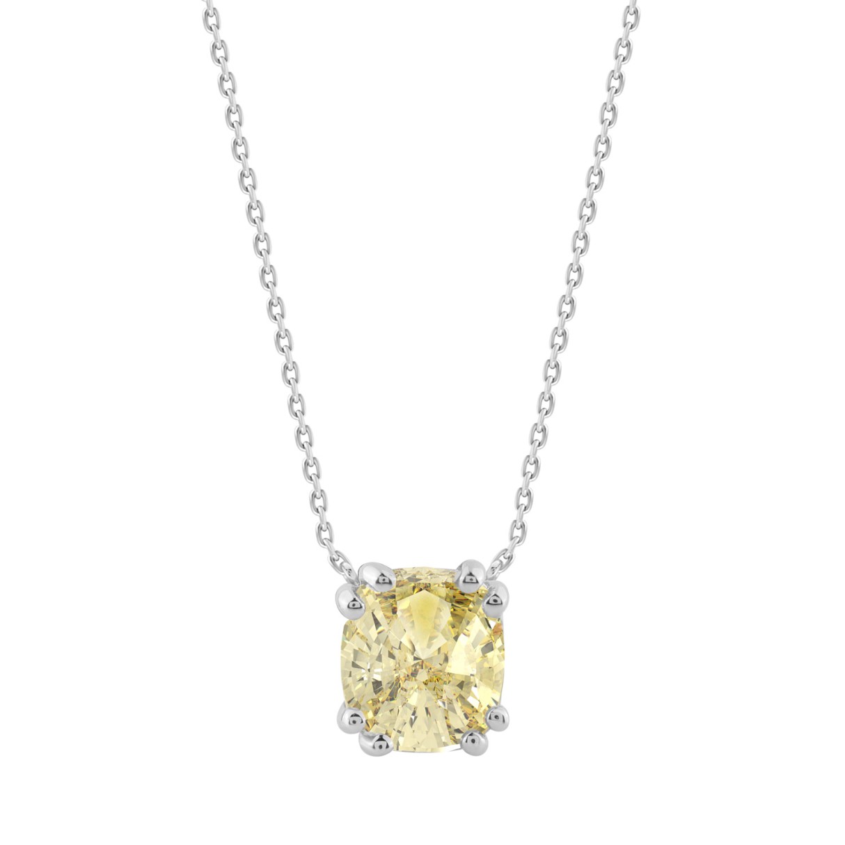 14K WHITE GOLD 1.00CT YELLOW CUSHION DIAMOND LADIES PENDANT