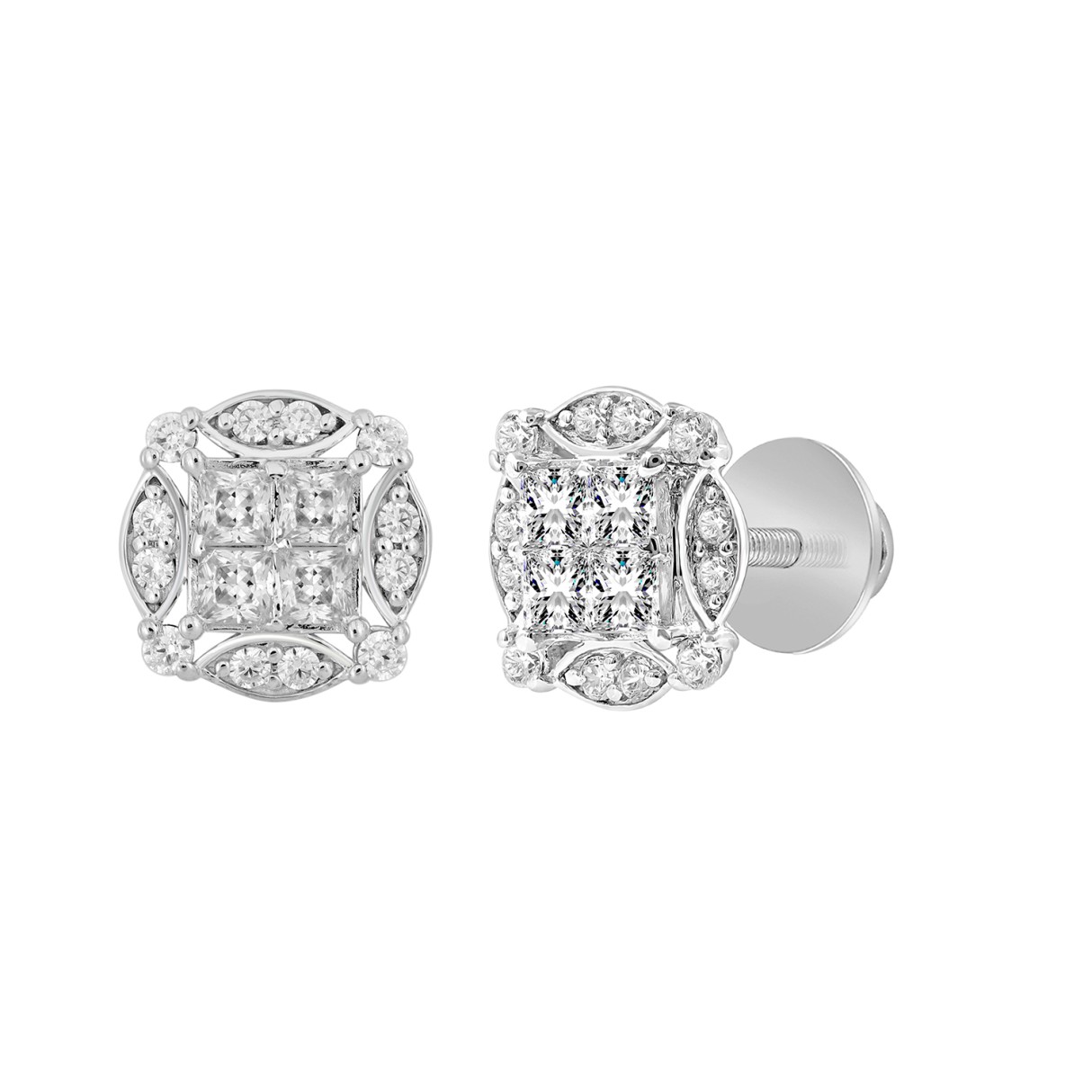 14K WHITE GOLD 1 1/4CT ROUND/PRINCESS DIAMOND MEN’S EARRINGS