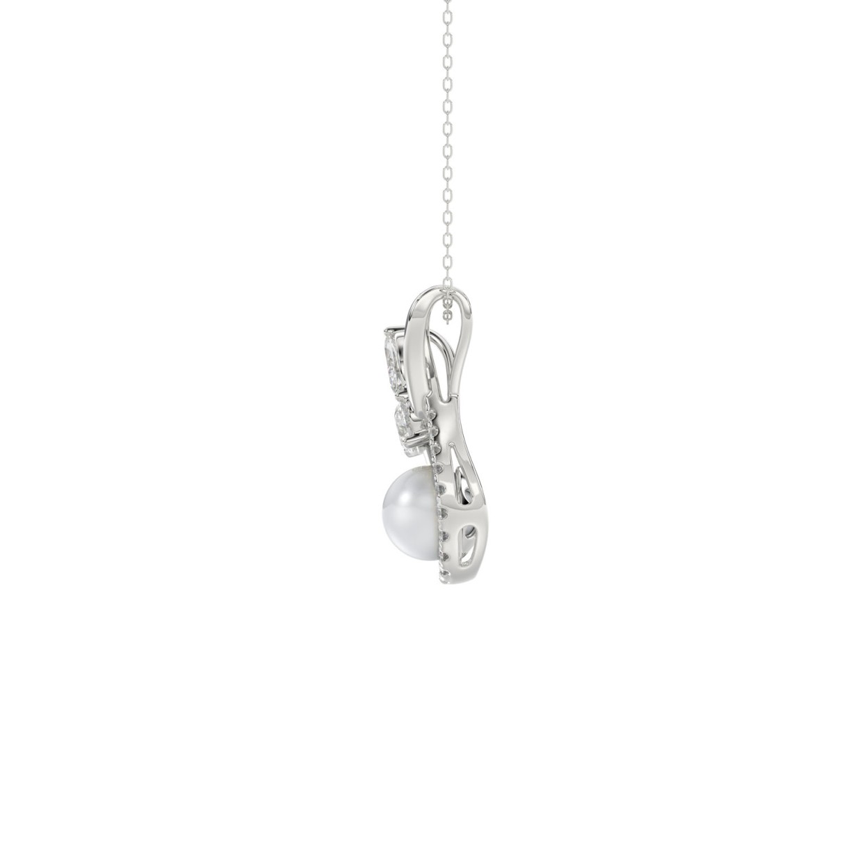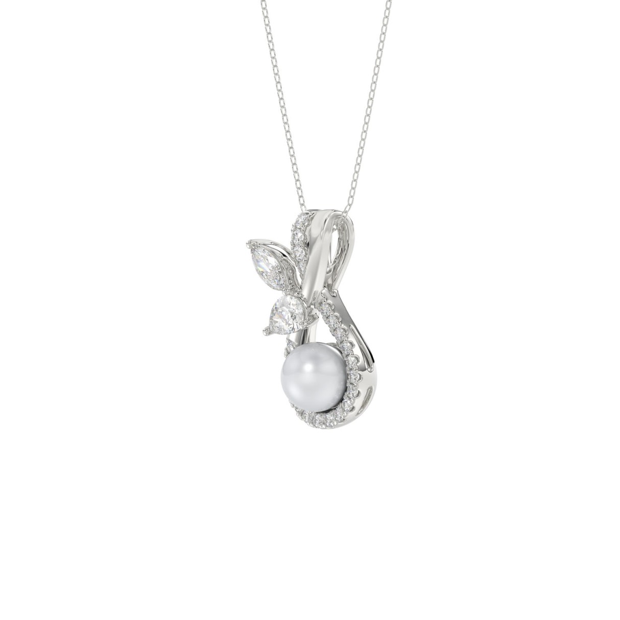 14K WHITE GOLD 1/2CT PEAR/ROUND/MARQUISE/PEARL DIAMOND LADIES PENDANT WITH CHAIN