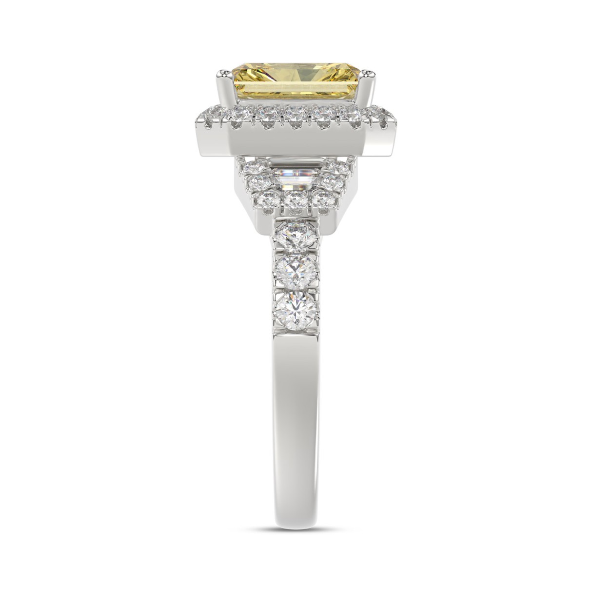 14K WHITE GOLD 2 3/4CT ROUND/BAGUETTE/RADIANT DIAMOND LADIES RING (CENTER STONE YELLOW RADIANT DIAMOND 2CT)