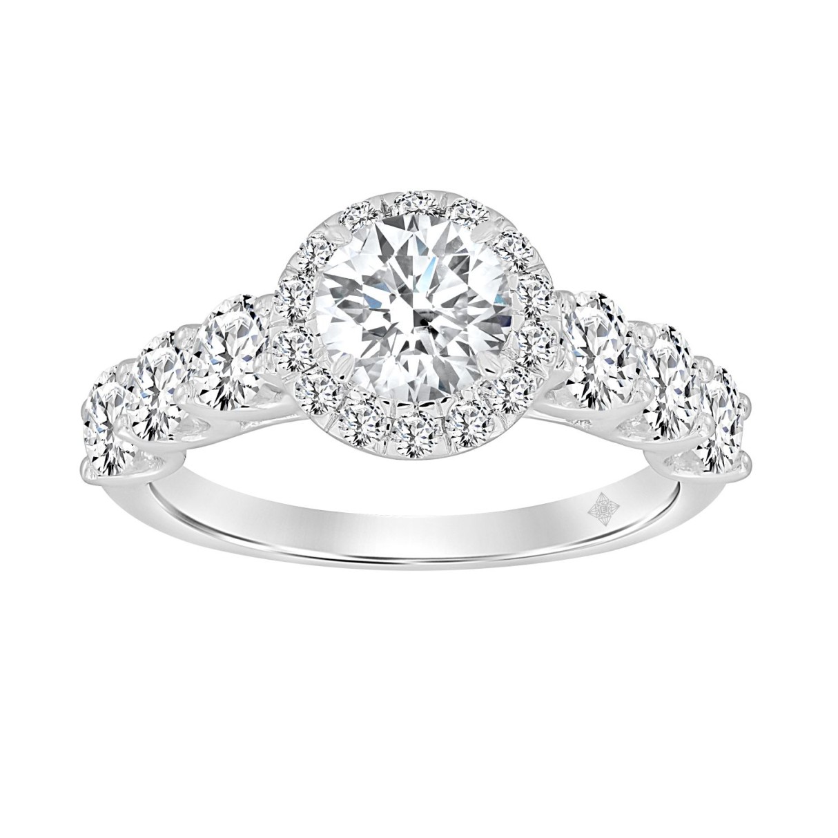 14K WHITE GOLD 2 3/4CT ROUND DIAMOND LADIES RING (CENTER STONE ROUND DIAMOND 1CT )