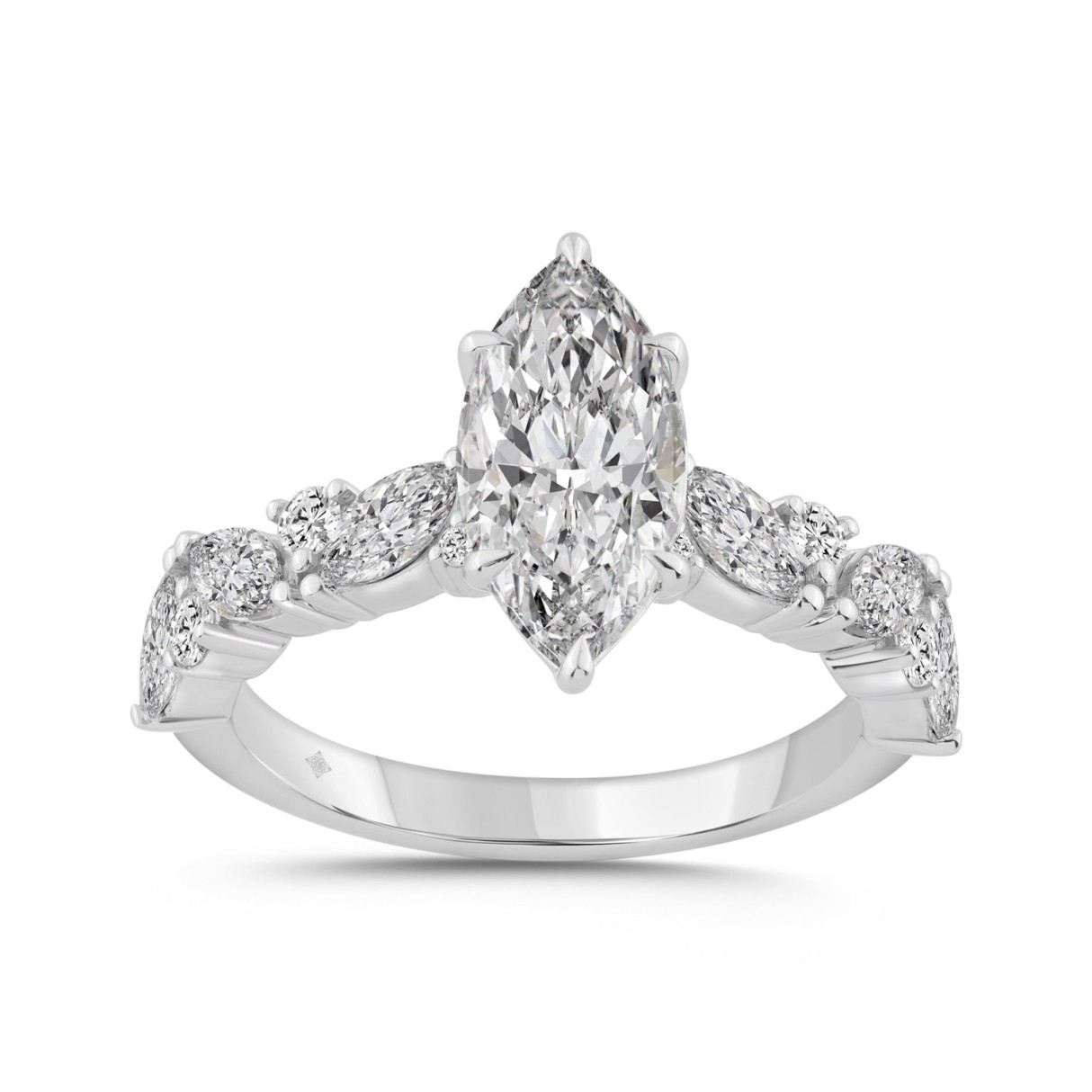 14K WHITE GOLD 2 3/4CT ROUND/MARQUISE DIAMOND LADIES RING (CENTER STONE MARQUISE DIAMOND 2CT)