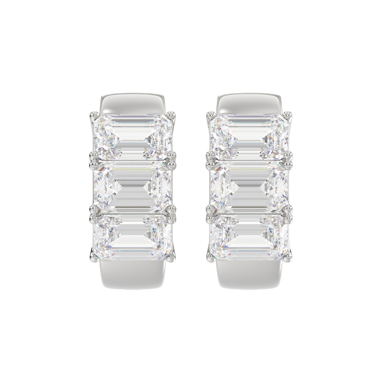 14K WHITE GOLD 3.00CT EMERALD DIAMOND LADIES HOOPS EARRINGS