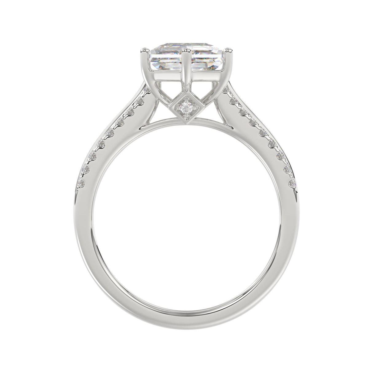 14K WHITE GOLD 3 1/4CT ROUND/HEXAGON DIAMOND LADIES RING (CENTER STONE HEXAGON STEP CUT DIAMOND 3CT