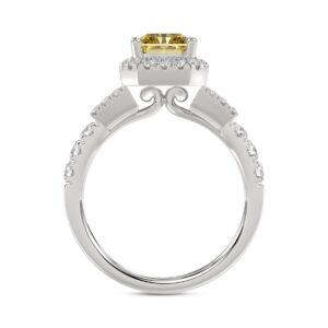 14K WHITE GOLD CRAFTED WITH 18K YELLOW GOLD BACK PLATE 1 1/3CT ROUND/BAGUETTE/YELLOW CUSHION DIAMOND LADIES EARRINGS