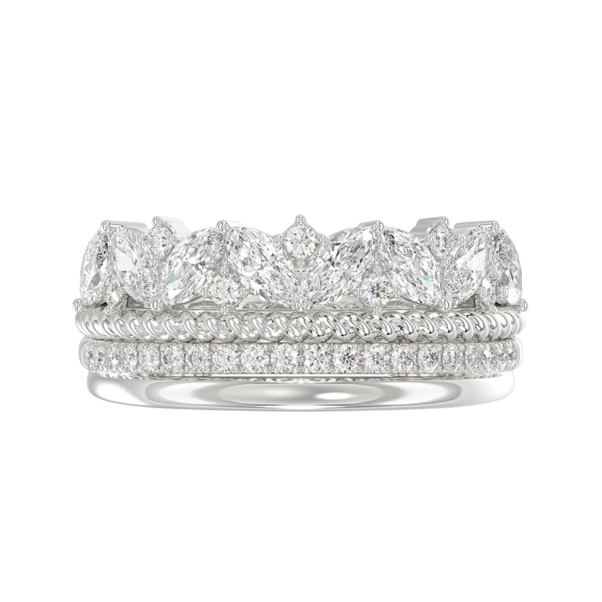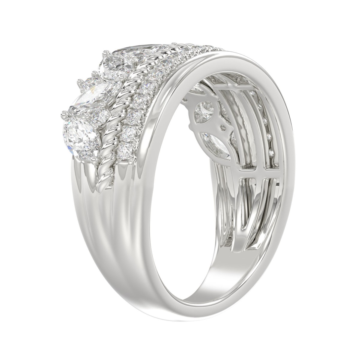 14K White Gold Ladies Fashion Ring with 1.00 CT Round & Marquise Diamonds