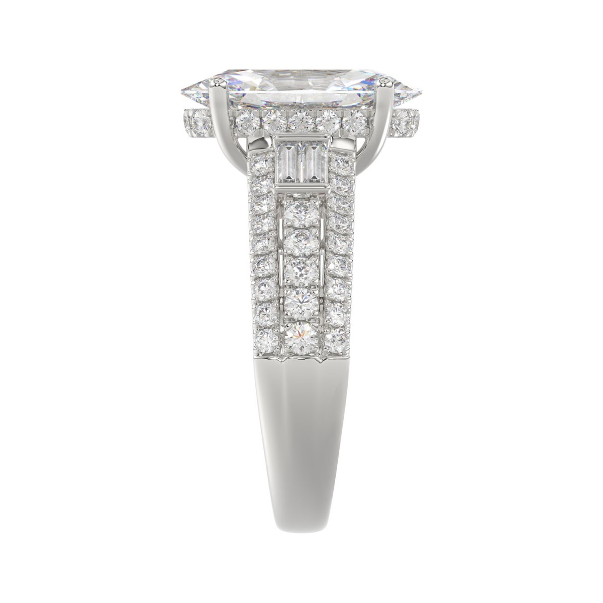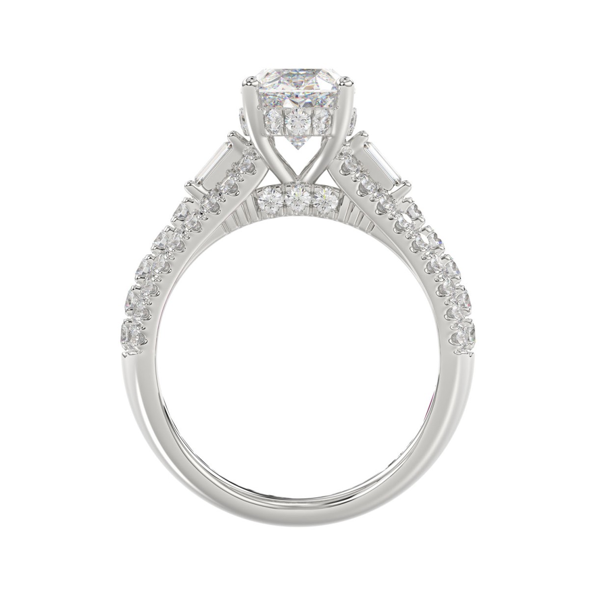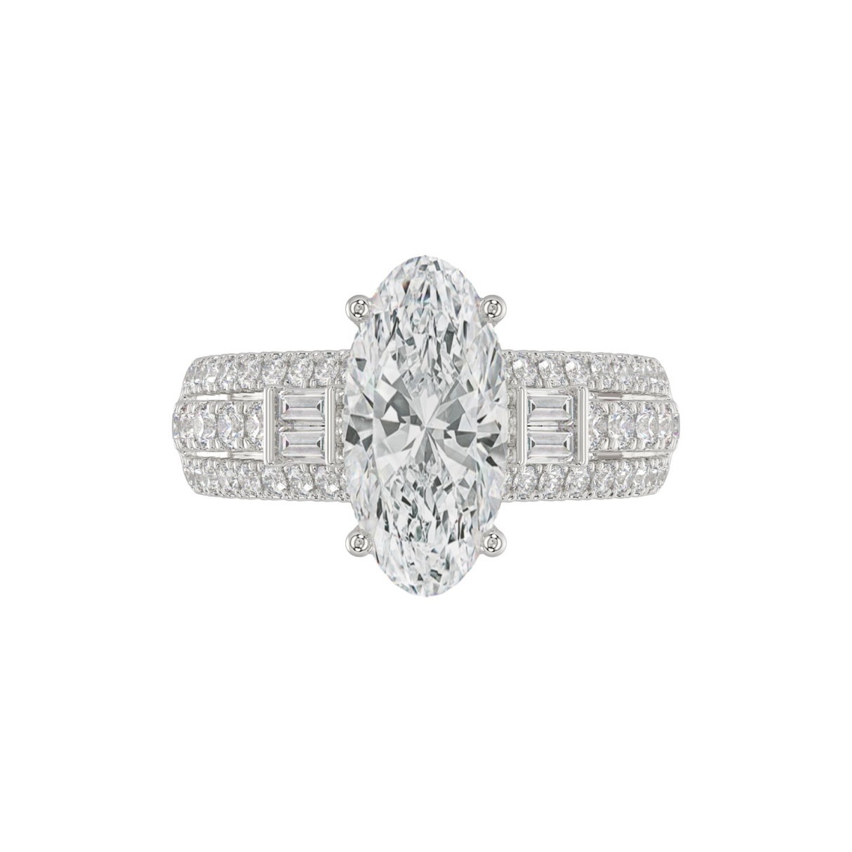 21K PLATINUM LADIES RING 4.00CT ROUND/OVAL/BAGUETTE DIAMOND (CENTER STONE OVAL DIAMOND 3CT)