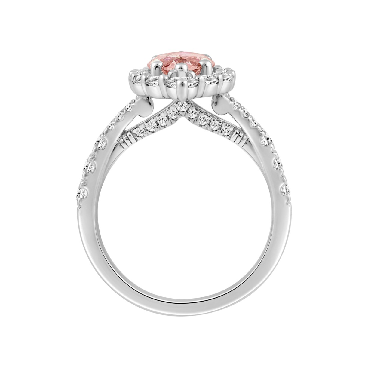 ETERNAL BLUSH COLLECTION 14K WHITE GOLD 3 1/4CT ROUND/MARQUISE DIAMOND LADIES RING (CENTER STONE PINK MARQUISE DIAMOND 2CT)