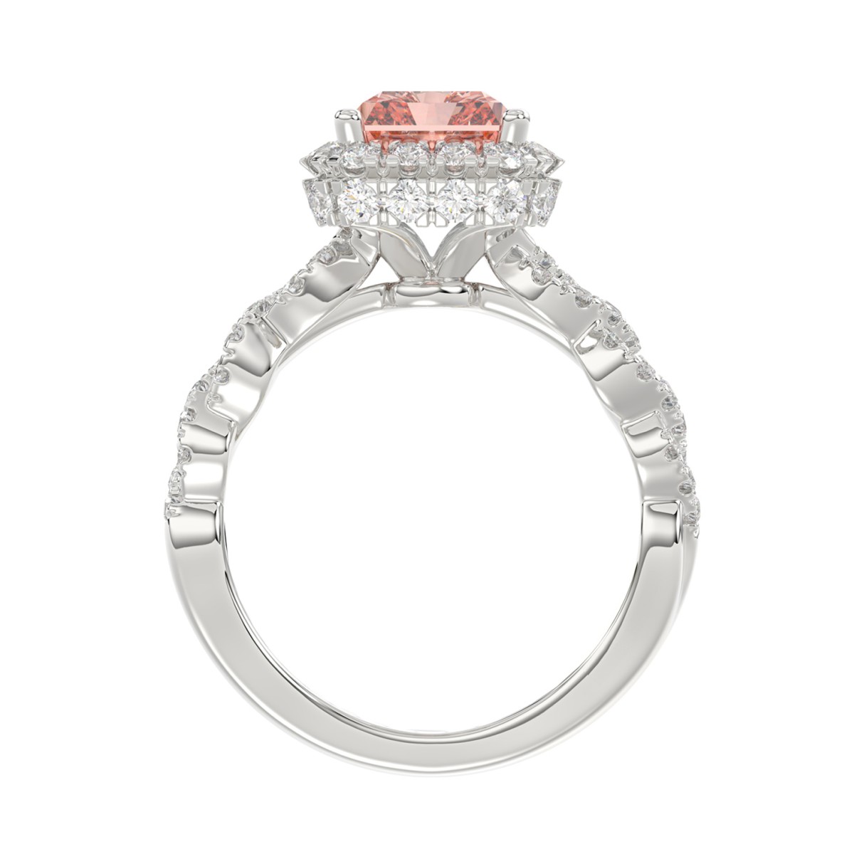 ETERNAL BLUSH COLLECTION 14K WHITE GOLD 4.00CT ROUND/ PINK RADIANT DIAMOND LADIES BRIDAL SET (CENTER STONE PINK RADIANT DIAMOND 3.00CT)