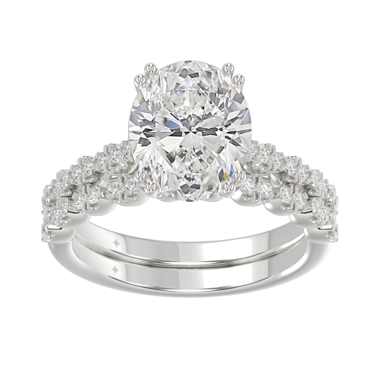 Ladies 14K White Gold Ladies Elegance- Bridal Set 3 1/3CT Round & Oval Diamonds 3.00CT Oval Center stone (Color F-G Clarity VS1/VS2)