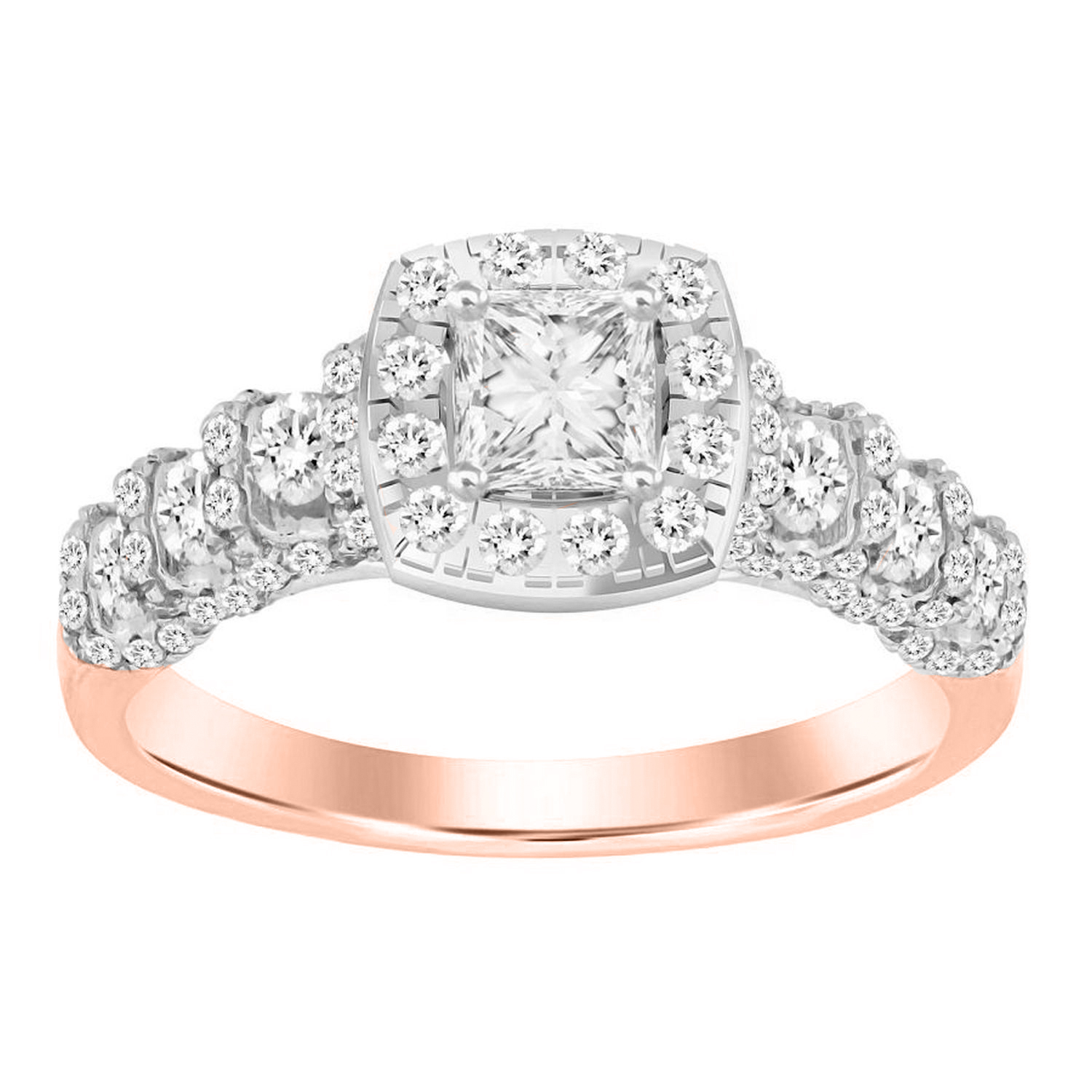 LADIES BRIDAL SET 1.00CT ROUND/PRINCESS DIAMOND 14K ROSE GOLD