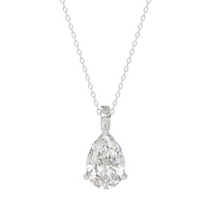 LADIES CROSS PENDANT WITH CHAIN 3CT ROUND DIAMOND 14K WHITE GOLD