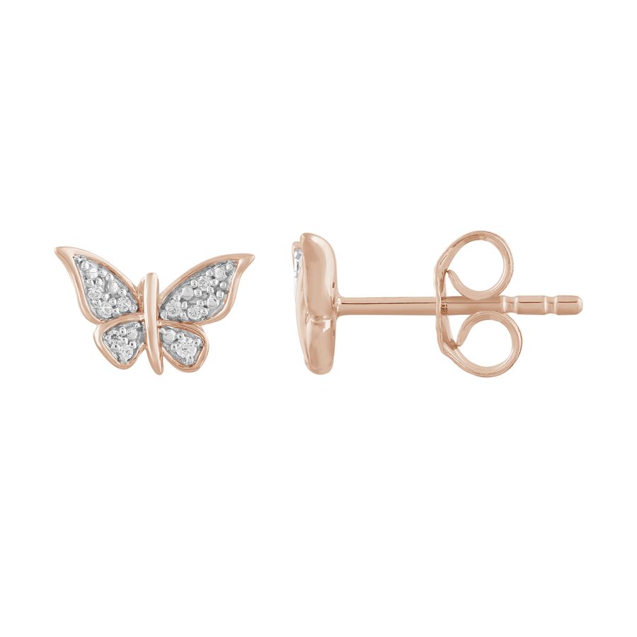 LADIES EARRINGS 0.05CT ROUND DIAMOND 10K ROSE GOLD