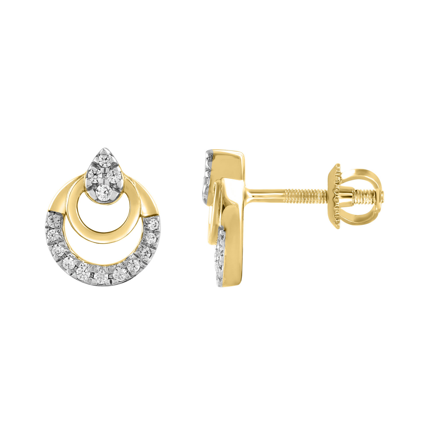 LADIES EARRINGS 0.13CT ROUND DIAMOND 14K YELLOW GOLD