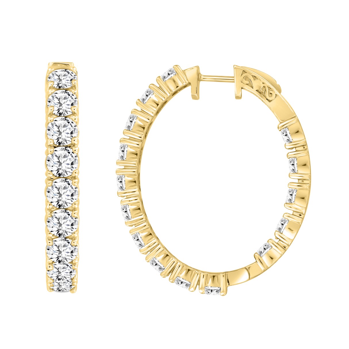 LADIES HOOP EARRINGS 11CT ROUND DIAMOND 14K YELLOW GOLD