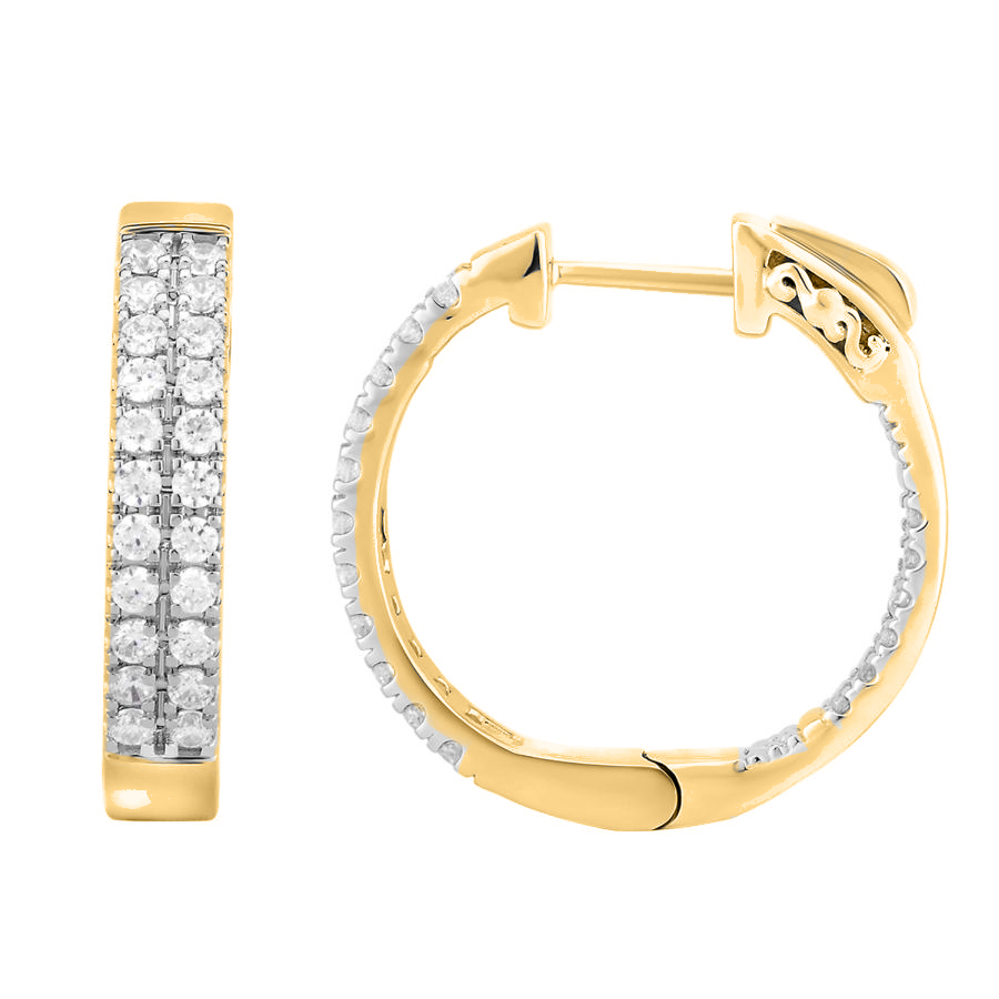 LADIES IN/OUT HOOP EARRINGS 1.00CT ROUND DIAMOND 14K YELLOW GOLD (SI QUALITY)