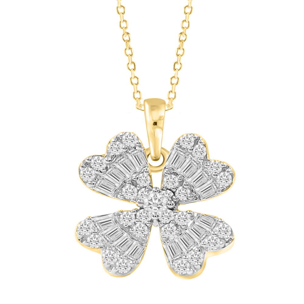 LADIES NECKLACE 0.33CT ROUND/BAGUETTE DIAMOND 14K YELLOW GOLD