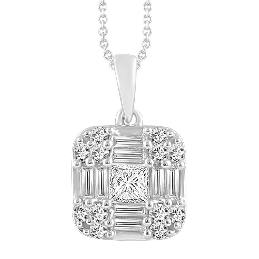 LADIES PENDANT WITH CHAIN 0.50CT ROUND/PRINCESS/BAGUETTE DIAMOND 14K WHITE GOLD