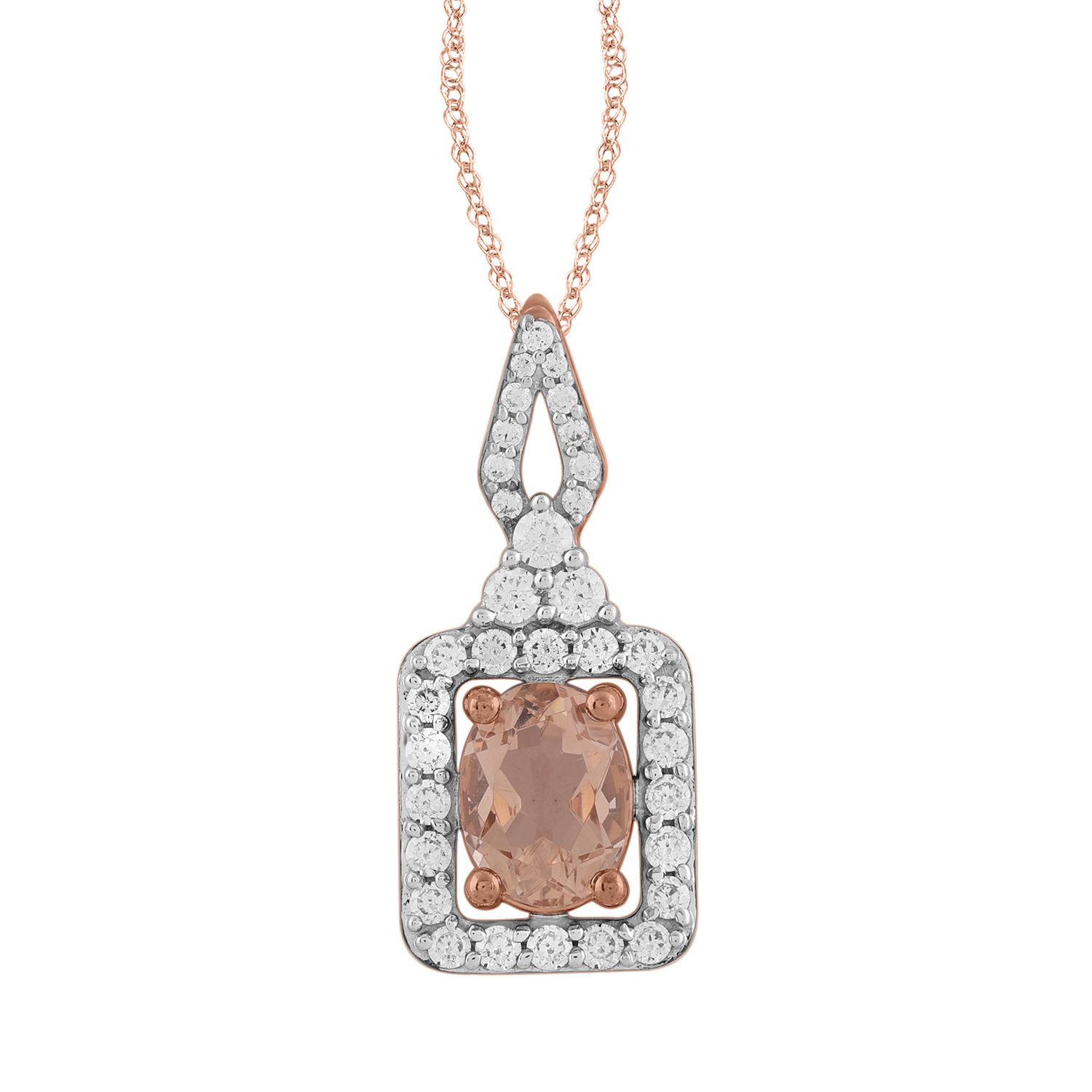 LADIES PENDANT WITH CHAIN 0.75CT ROUND/OVAL DIAMOND 14K ROSE GOLD(CENTER STONE 1.00 CT OVAL DIAMOND)