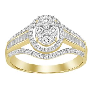 LADIES RING 0.20CT ROUND/BAGUETTE DIAMOND 10K YELLOW GOLD