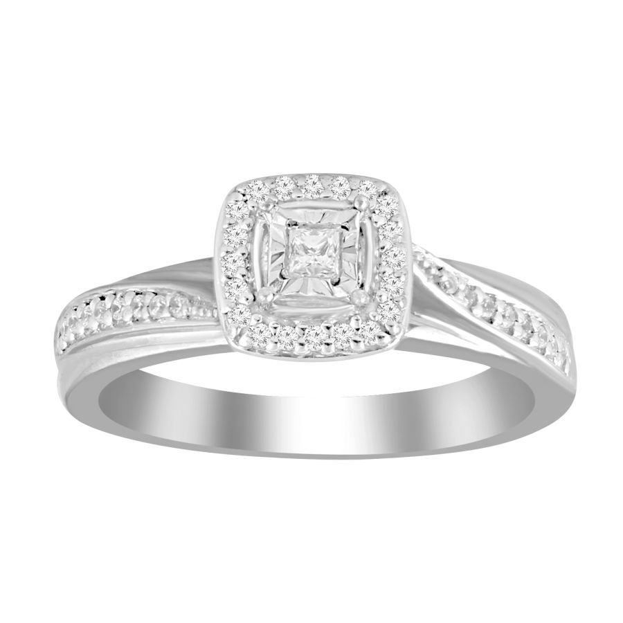 LADIES RING 0.20CT ROUND/PRINCESS DIAMOND 10K WHITE GOLD