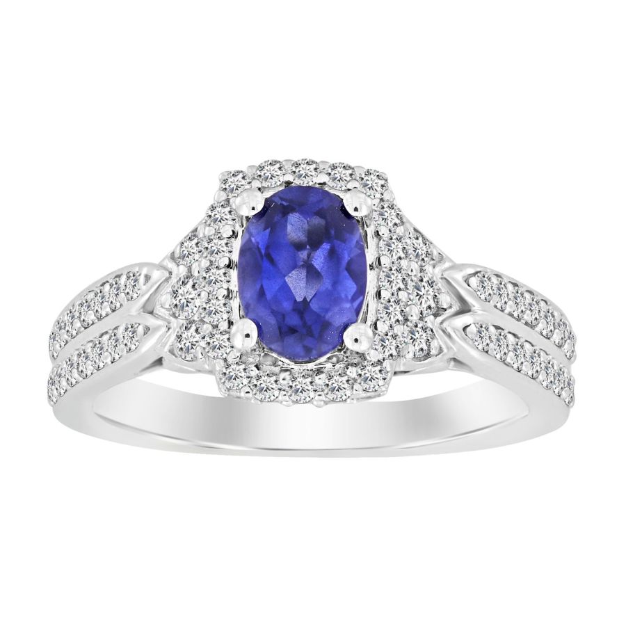 LADIES RING 1.30CT ROUND DIAMOND 14K WHITE GOLD (CENTER STONE 0.88CT OVAL DIAMOND)