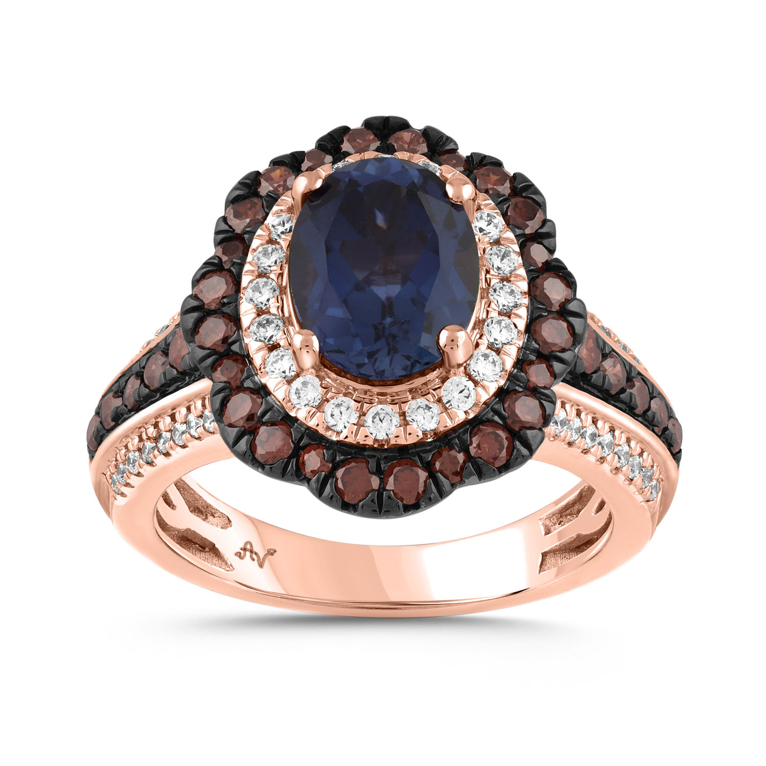 LADIES RING 3.00CT ROUND/DARK BROWN/OVAL SAPPHIRE DIAMOND 14K ROSE GOLD (CENTER STONE OVAL SAPPHIRE DIAMOND 2.00CT)
