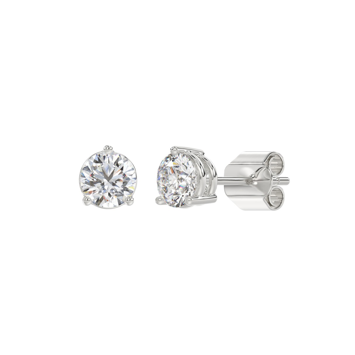 LADIES SOLITAIRE EARRINGS 1 1/2CT ROUND DIAMOND 14K WHITE GOLD