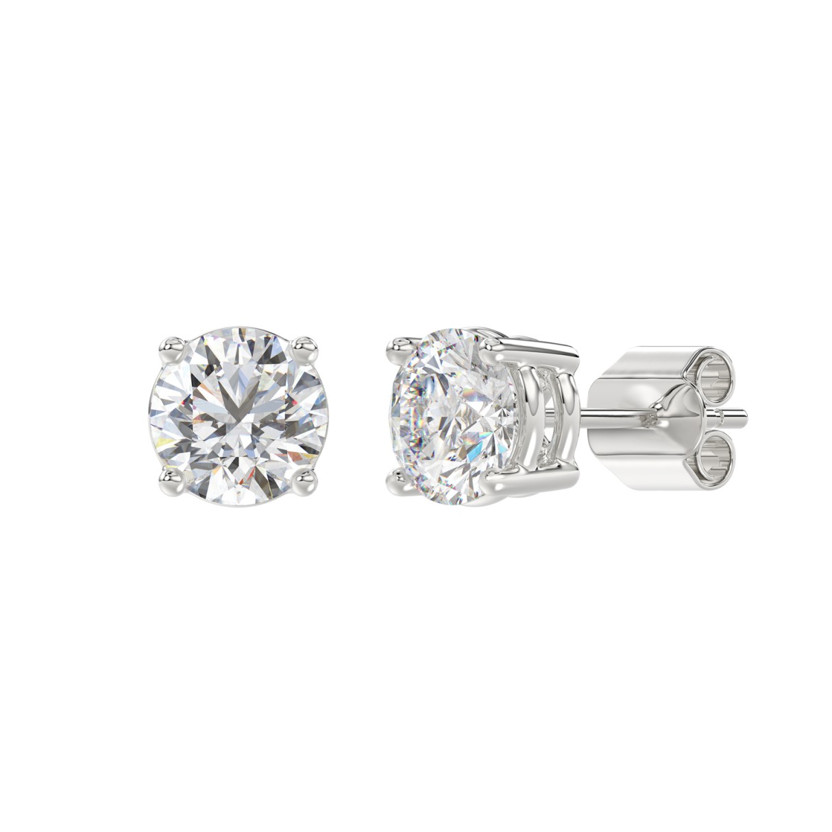 LADIES SOLITAIRE EARRINGS 3CT ROUND DIAMOND 14K WHITE GOLD (CENTER STONE ROUND DIAMOND 1 1/2CT)