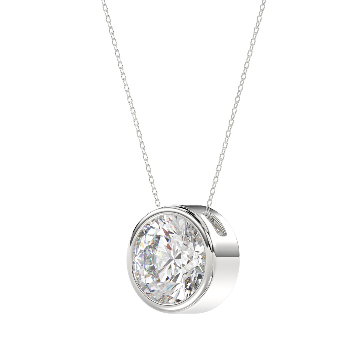 LADIES SOLITAIRE PENDANT 3CT ROUND DIAMOND 14K WHITE GOLD