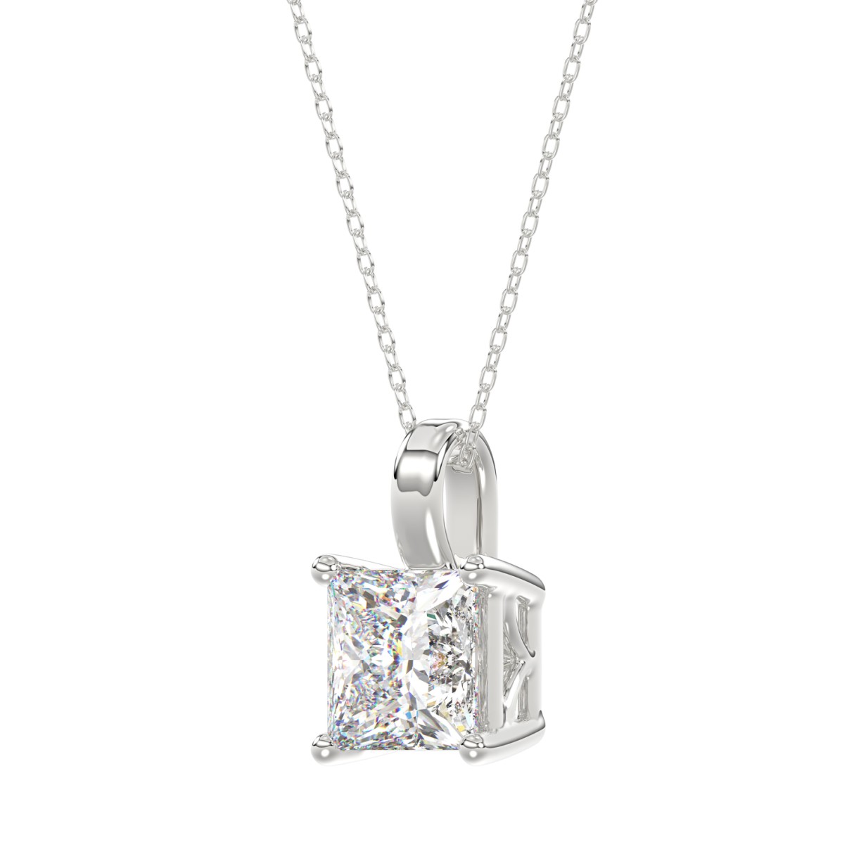 LADIES SOLITAIRE PENDANT WITH CHAIN 4CT PRINCESS DIAMOND 14K WHITE GOLD