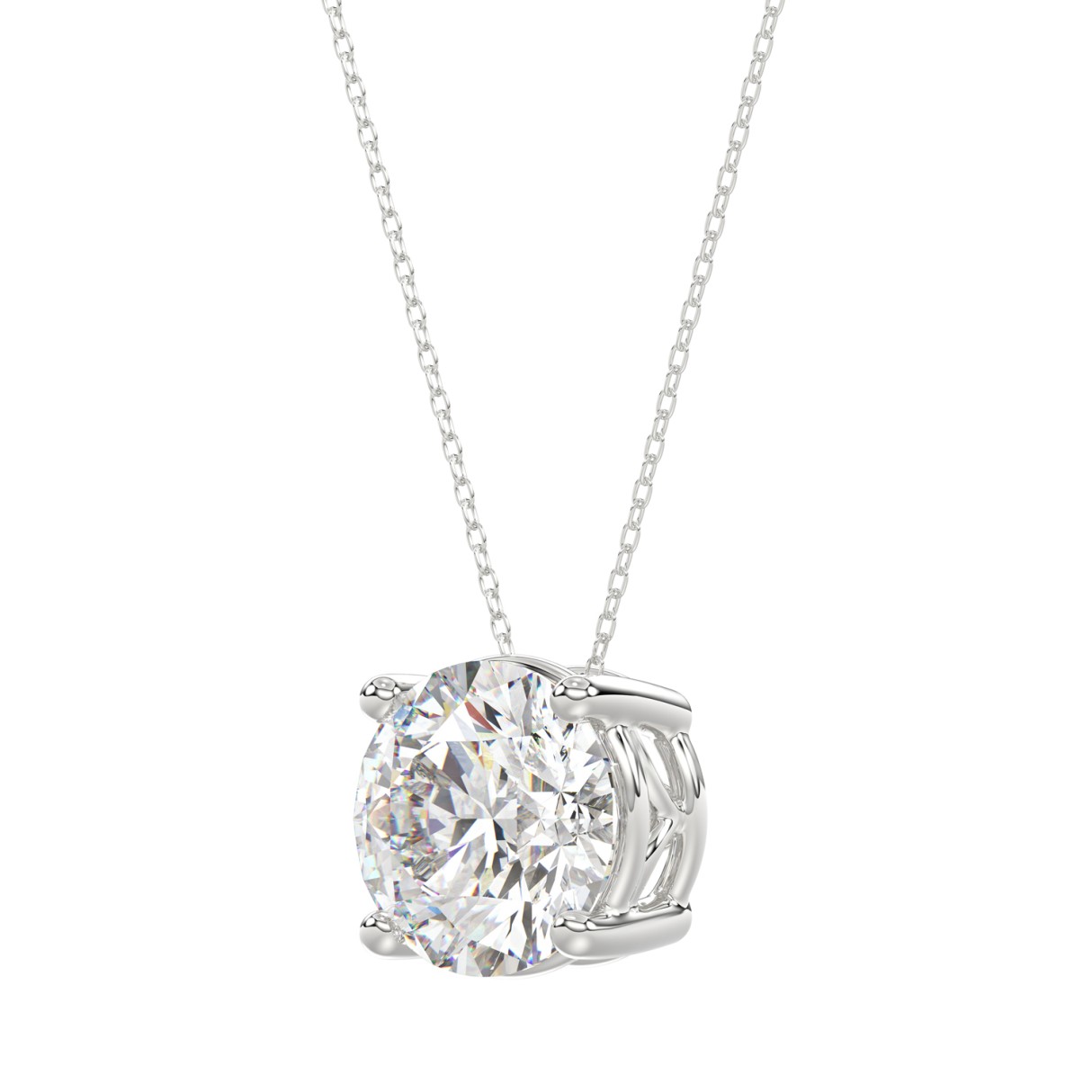 LADIES SOLITAIRE PENDANT WITH CHAIN 4CT ROUND DIAMOND 14K WHITE GOLD